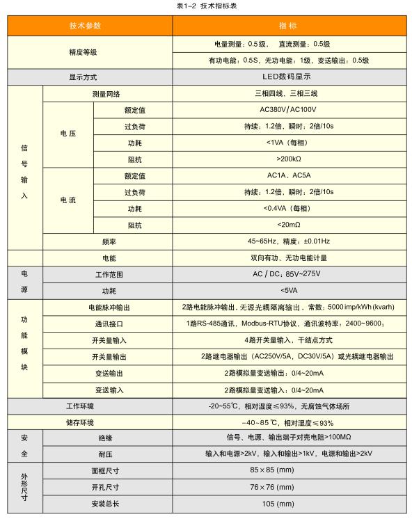 多功能電力監(jiān)測儀表是一種具有可編程測量,綜合顯示三相電參量、電能計量、數(shù)字通訊功能于一體的智能化儀表。能夠完成電量測量、電能計量、數(shù)據(jù)顯示、采集及傳輸,可廣泛應用于變電站自動化、配電自動化、智能建筑、企業(yè)內(nèi)部電能計量、管理、考核。測量精度為0.5S級,實現(xiàn)現(xiàn)場顯示和遠程RS-485數(shù)字接口通訊、采用Modbus-RTU通訊協(xié)議。